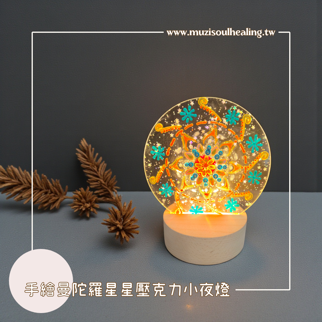溫暖燈光透過曼陀羅圖騰緩緩流動像星光般灑落,為空間帶來柔和而不刺眼的光感,非常適合放在床邊、書桌、冥想角落或療癒空間。