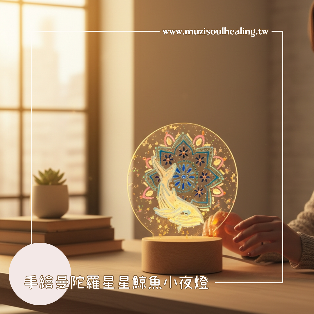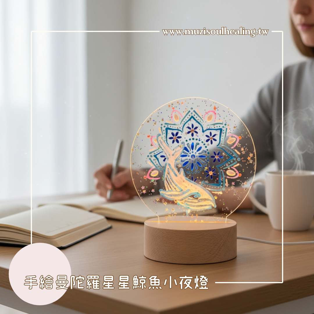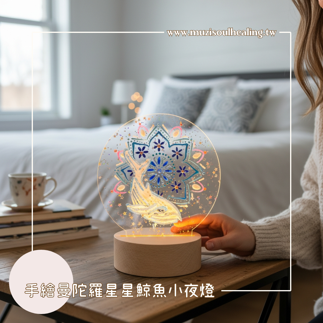 結合象徵深層情緒與守護力量的鯨魚,以及代表內在秩序與平衡的曼陀羅圖騰,讓光不只是照亮空間,也是溫柔地安住內在之燈。